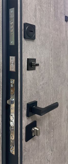 - Фурнитура: черная ручка на розетке KEDR DEF 144 black, антисрезы, 3 наружные петли, ночник