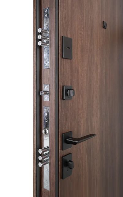 • Фурнітура: квадратна ручка розетка, 3 зовнішні петлі, антизрізи 2 шт, вічко Securemme, регулятор притвору, нержавіючий поріг, нічник