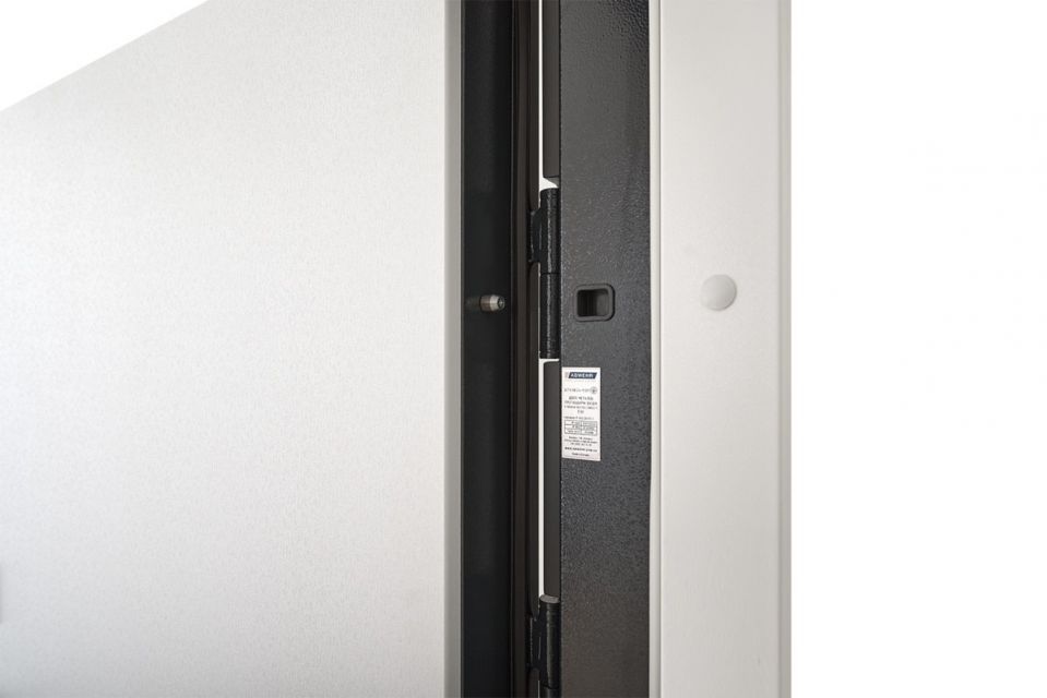 Конструктив полотна серії BIONICA - з вуличного боку лист металу, пінополістирол, лист металу, фальгоізол, мінеральна вата, спінений утеплювач, лист металу, терморозрив, МДФ накладка.