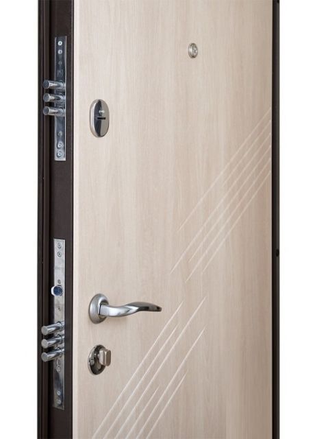 • Фурнитура: ручка раздельная, 2 наружные петли, антисрезы 2 шт, броненакладка, глазок, ответные планки