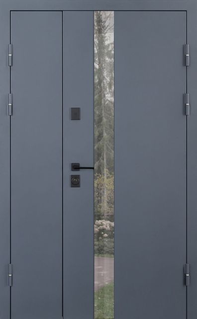 • Фурнитура: двухкамерный стеклопакет, ручка раздельная, 3 наружные петли, антисрезы 2 шт, броненакладка, регулятор притвора, нержавеющий порог