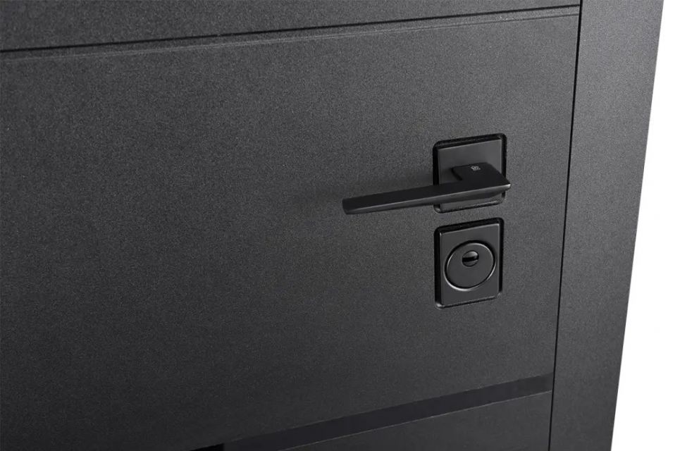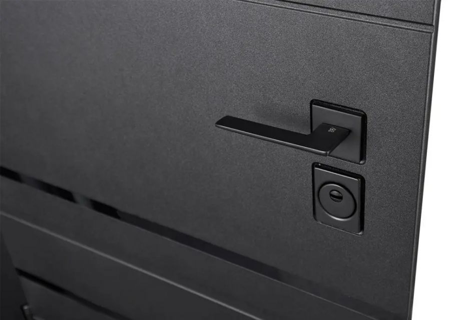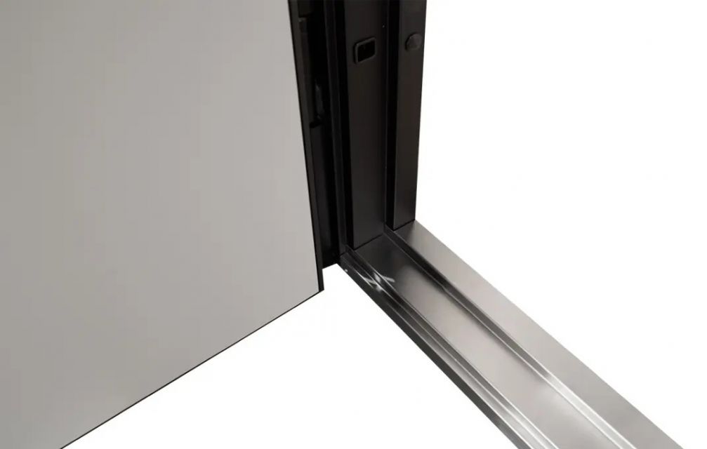 • Фурнітура: роздільна ручка, 3 зовнішні петлі, 2 антизрізи, втоплена броненакладка, регулятор притвору Securemme, нержавіючий поріг, нічник