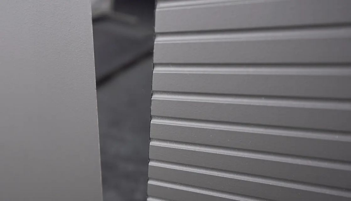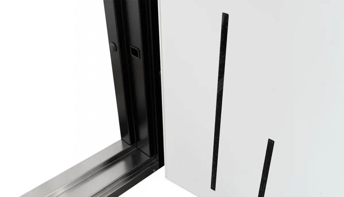 Конструктив полотна серії BIONICA - з вуличного боку лист металу, пінополістирол, лист металу, фальгоізол, мінеральна вата, спінений утеплювач, лист металу, терморозрив, МДФ накладка.