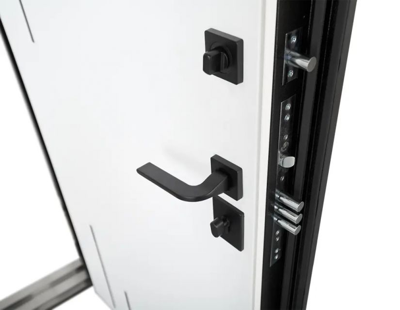 • Фурнітура: роздільна ручка, 3 зовнішні петлі, 2 антивідрізи, утоплена броненакладка, регулятор притвору Securemme, нержавіючий поріг, нічник