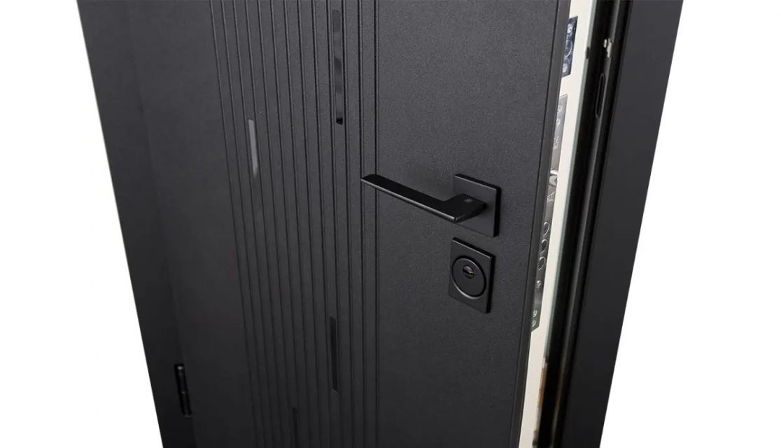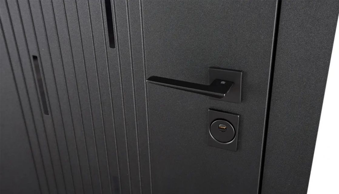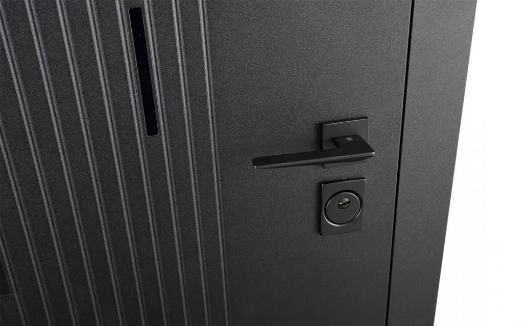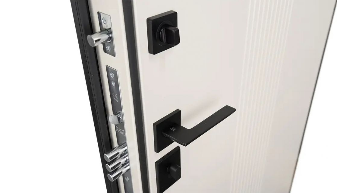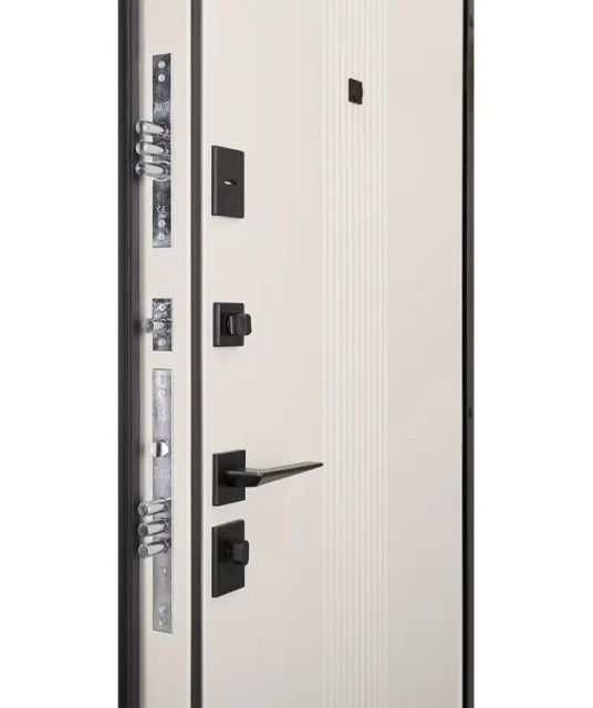 • Фурнітура: ручка квадратна з розеткою, 3 зовнішні петлі, 2 антивзломні штирі, вічко Securemme, регулятор притвору, нержавіючий поріг, нічник