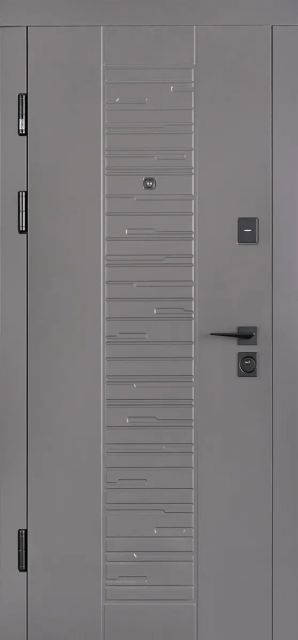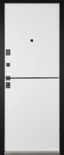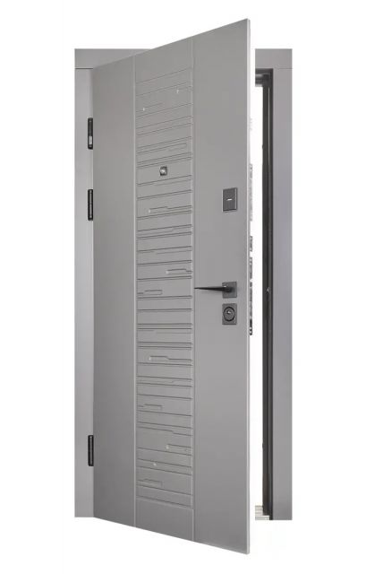 • Фурнітура: ручка квадратна з розеткою, 3 зовнішні петлі, 2 антивзломні штирі, вічко Securemme, регулятор притвору, нержавіючий поріг, нічник