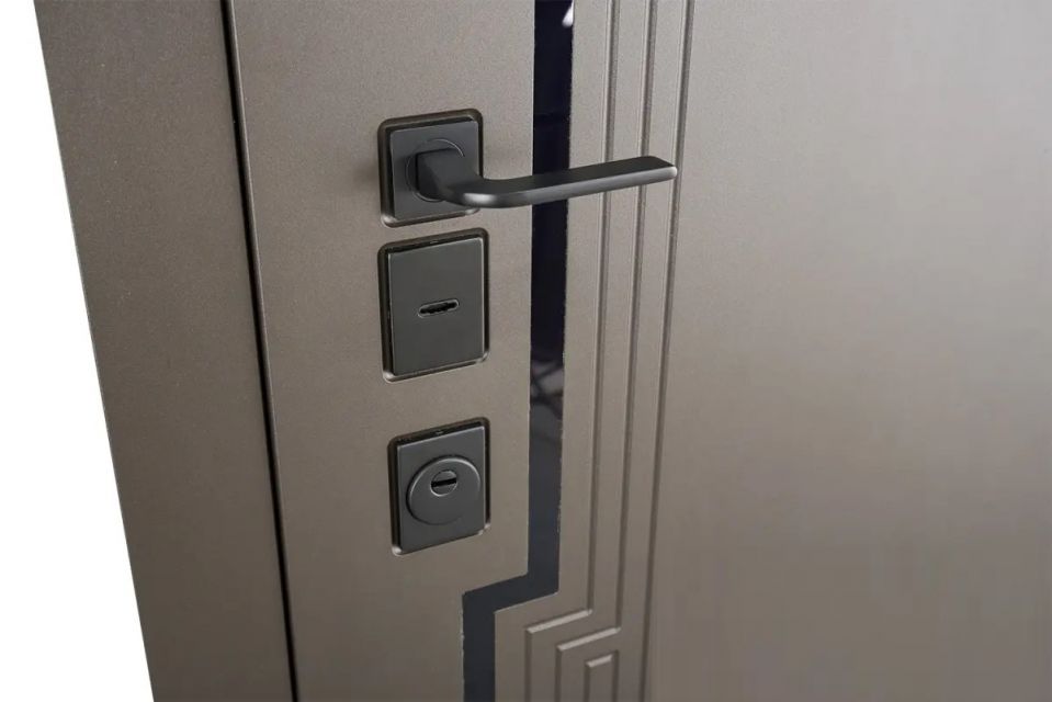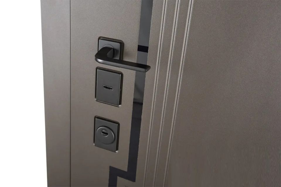 • Фурнітура: чорна роздільна ручка, 3 зовнішні петлі, 2 антисрізи, утоплена броненакладка, вічко, нічник, нержавіючий поріг