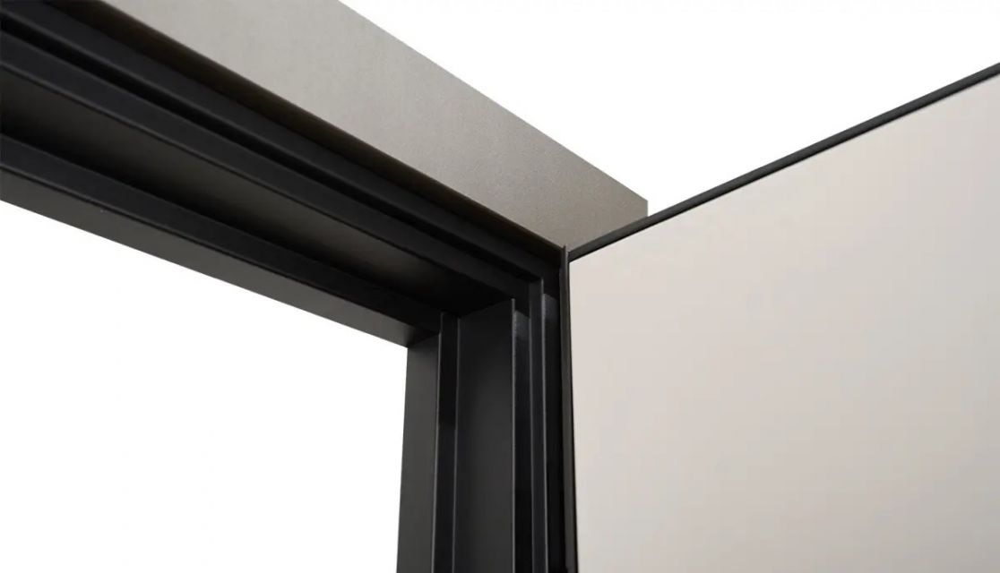 Конструктив полотна серії BIONICA - з вуличного боку лист металу, пінополістирол, лист металу, фальгоізол, мінеральна вата, спінений утеплювач, лист металу, терморозрив, МДФ накладка.