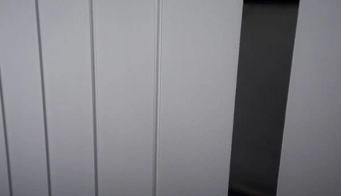 Конструктив полотна серії BIONICA - з вуличного боку лист металу, пінополістирол, лист металу, фальгоізол, мінеральна вата, спінений утеплювач, лист металу, терморозрив, МДФ накладка.
