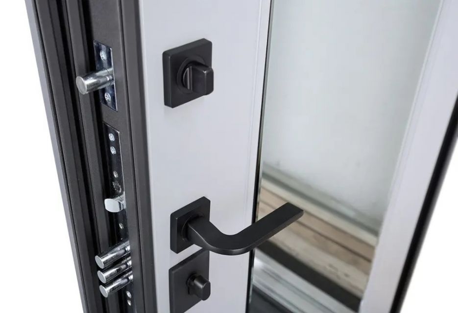 • Фурнітура: роздільна ручка, 3 зовнішні петлі, 2 антивідрізи, утоплена броненакладка, регулятор притвору Securemme, нержавіючий поріг, нічник