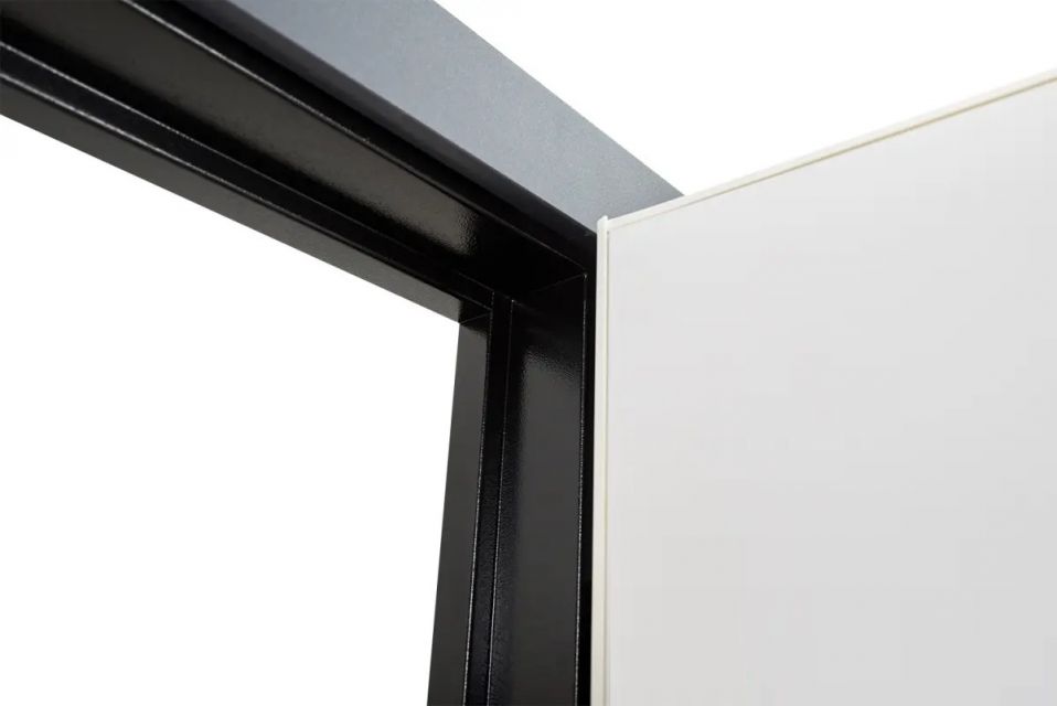Конструктив полотна серії BIONICA - з вуличного боку лист металу, пінополістирол, лист металу, фальгоізол, мінеральна вата, спінений утеплювач, лист металу, терморозрив, МДФ накладка.