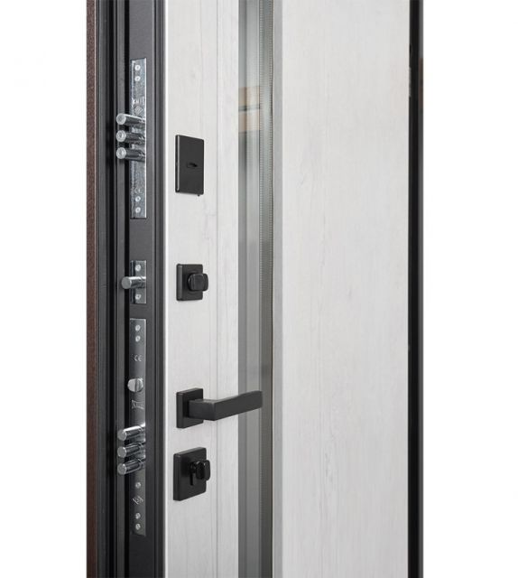 • Фурнітура: ручка роздільна, 3 зовнішні петлі, антизрізи 2 шт, броненакладки, регулятор притвору, нічник, нержавіючий поріг