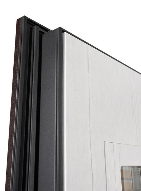 Конструктив полотна серії COTTAGE - з вуличного боку вологостійкий МДФ, лист металу, фальгоізол, мінеральна вата, спінений утеплювач, лист металу, терморозрив, накладка МДФ.