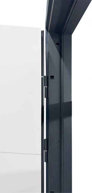 Фурнітура: чорна ручка на розетці MODO BARSA black, антисрізи, 3 зовнішні петлі, нержавіючий поріг, нічник
