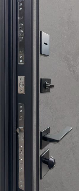 - Фурнітура: чорна ручка на розетці MODO BARSA black, антисрізи, 3 зовнішні петлі, поріг з нержавіючої сталі, нічна засувка