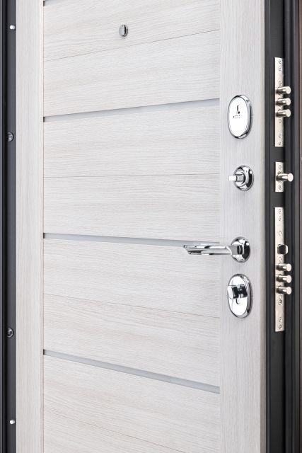 - Фурнітура: втоплені броненакладки, антизрізи, ручка на розетці, вічко, 2 зовнішні петлі, нічник "у комплекті"