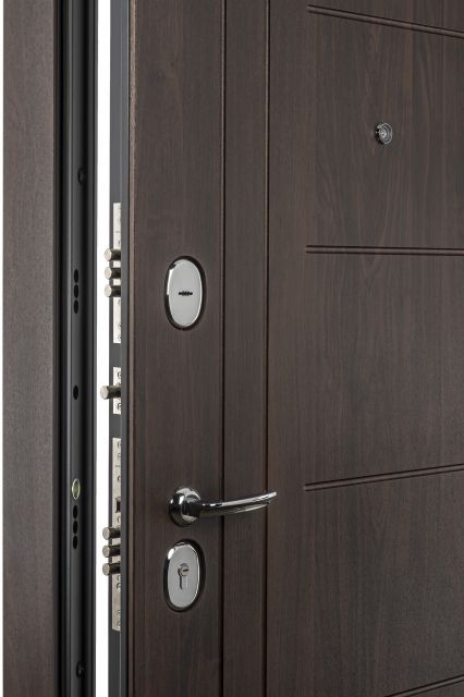 - Фурнітура: втоплені броненакладки, антизрізи, ручка на розетці, вічко, 2 зовнішні петлі, нічник "у комплекті"