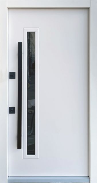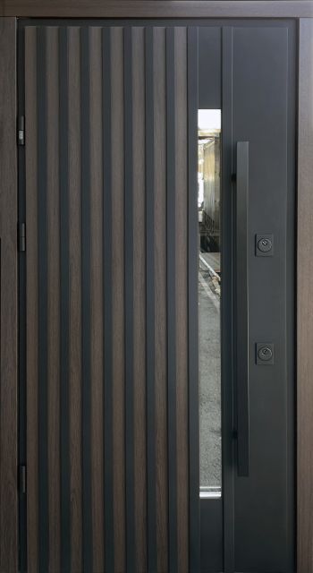 - Фурнітура: утоплені броненакладки, антизрізи, ручка труба DMD, 3 зовнішні петлі, магнітний притиск, нержавіючий поріг