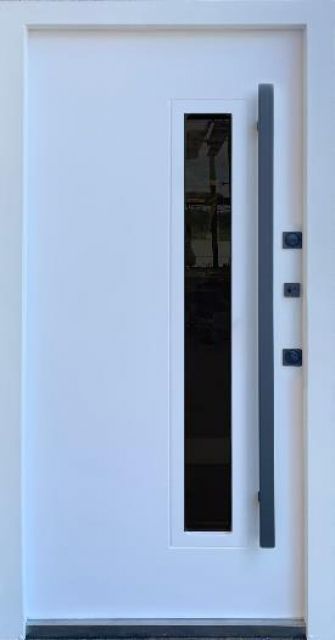 - Фурнітура: антизрізи, чорна фурнітура, ручка вертикальна 1450 мм, 3 зовнішні петлі, нержавіючий поріг, нічник