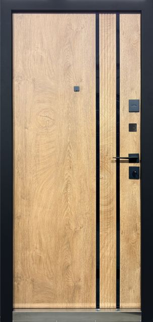 - Фурнітура: чорна ручка на розетці MODO BARSA black, антисрізи, 3 зовнішні петлі, вічко, поріг з нержавіючої сталі, нічна засувка