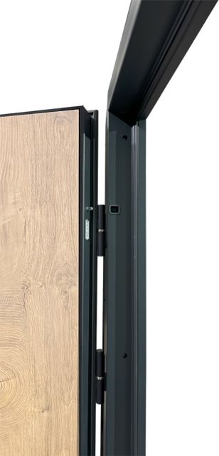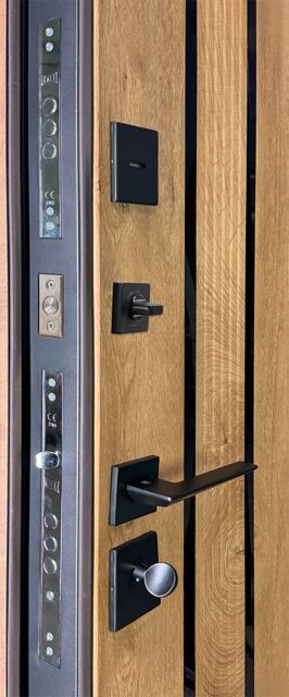 - Фурнітура: чорна ручка на розетці MODO BARSA black, антисрізи, 3 зовнішні петлі, вічко, поріг з нержавіючої сталі, нічна засувка