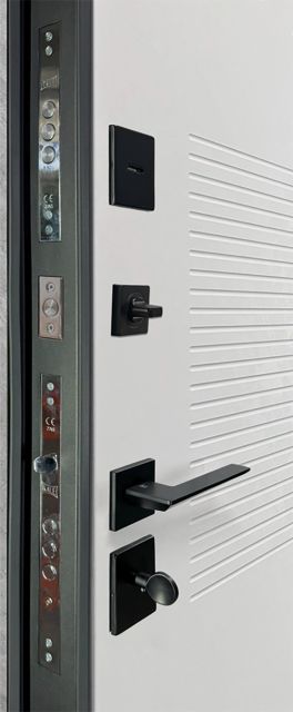 - Фурнітура: чорна ручка на розетці MODO BARSA black, антисрізи, 3 зовнішні петлі, вічко, поріг з нержавіючої сталі, нічна засувка