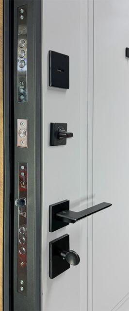 - Фурнітура: чорна ручка на розетці MODO BARSA black, антисрізи, 3 зовнішні петлі, вічко, поріг з нержавіючої сталі, нічна засувка
